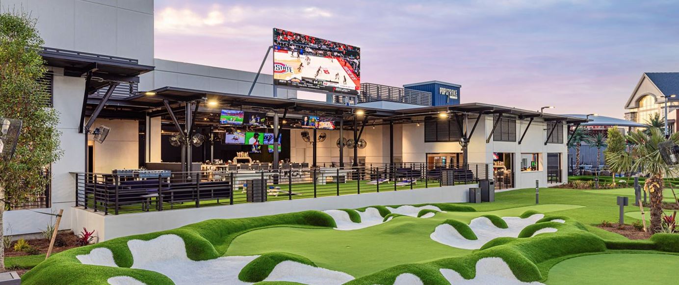 In addition to mini golf, PopStroke offers a 11,166 square-foot, full-service restaurant and bar with TVs, ice cream parlor, outdoor gaming with cornhole, foosball and table tennis.